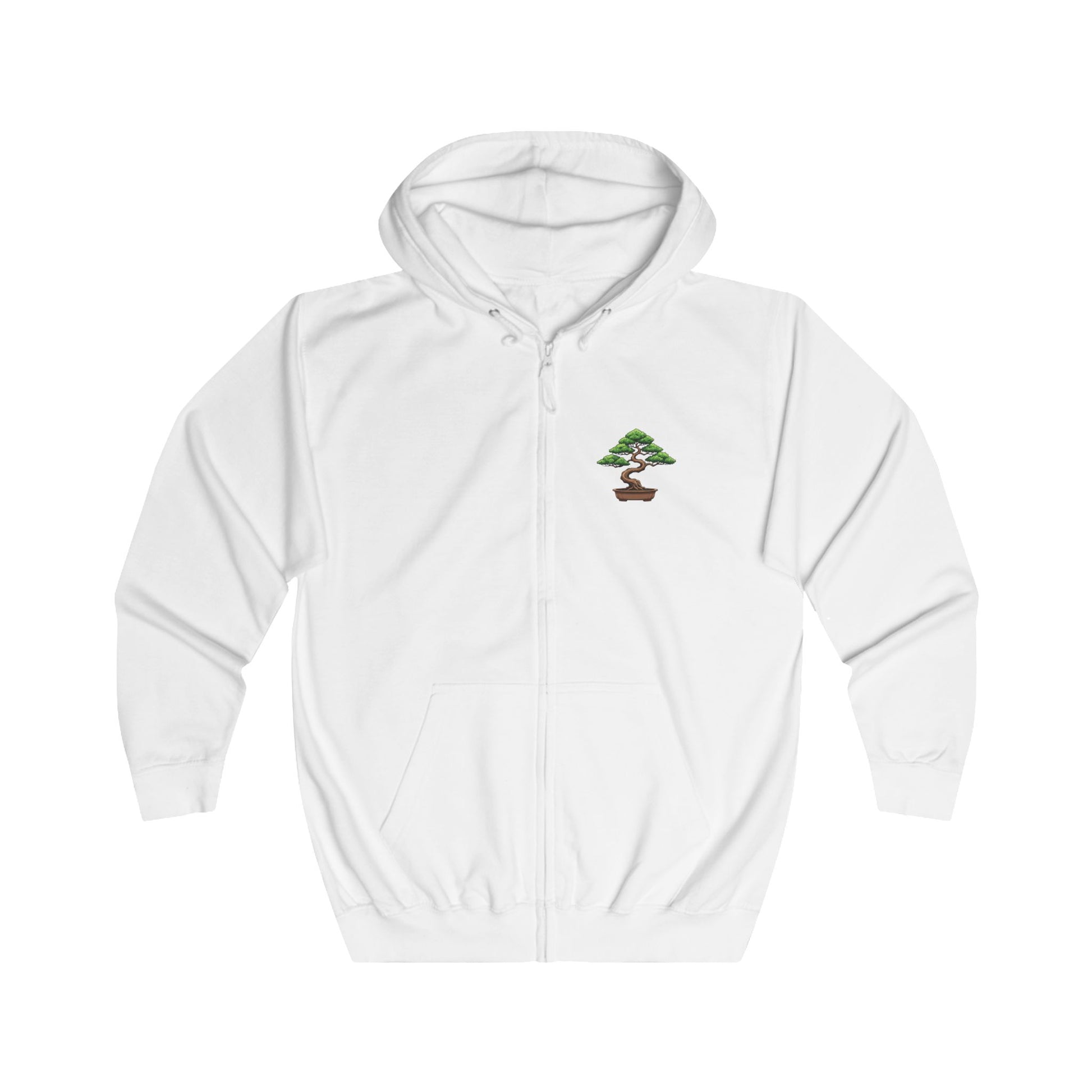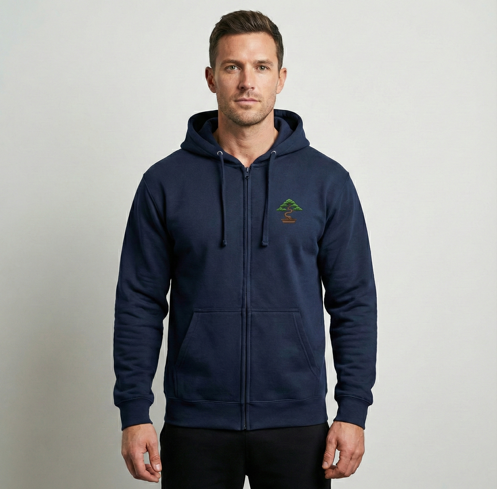 A cozy, loose-fit zip hoodie inspired by quiet afternoons in the garden or time spent tending small living things. The tiny bonsai printed on the chest feels like a secret—subtle, intentional, and calming. Soft, mid-weight ring-spun cotton with a touch of polyester gives the fabric a smooth hand and gentle drape; the double hood and drawstring add a snug layer for cooler mornings. Wear it over a tee while you sip coffee on the porch, layer it for a late-night walk through the neighborhood, or keep it nearby during indoor potting sessions. The understated design reads as thoughtful and low-key, for people who prefer quiet details over loud logos.