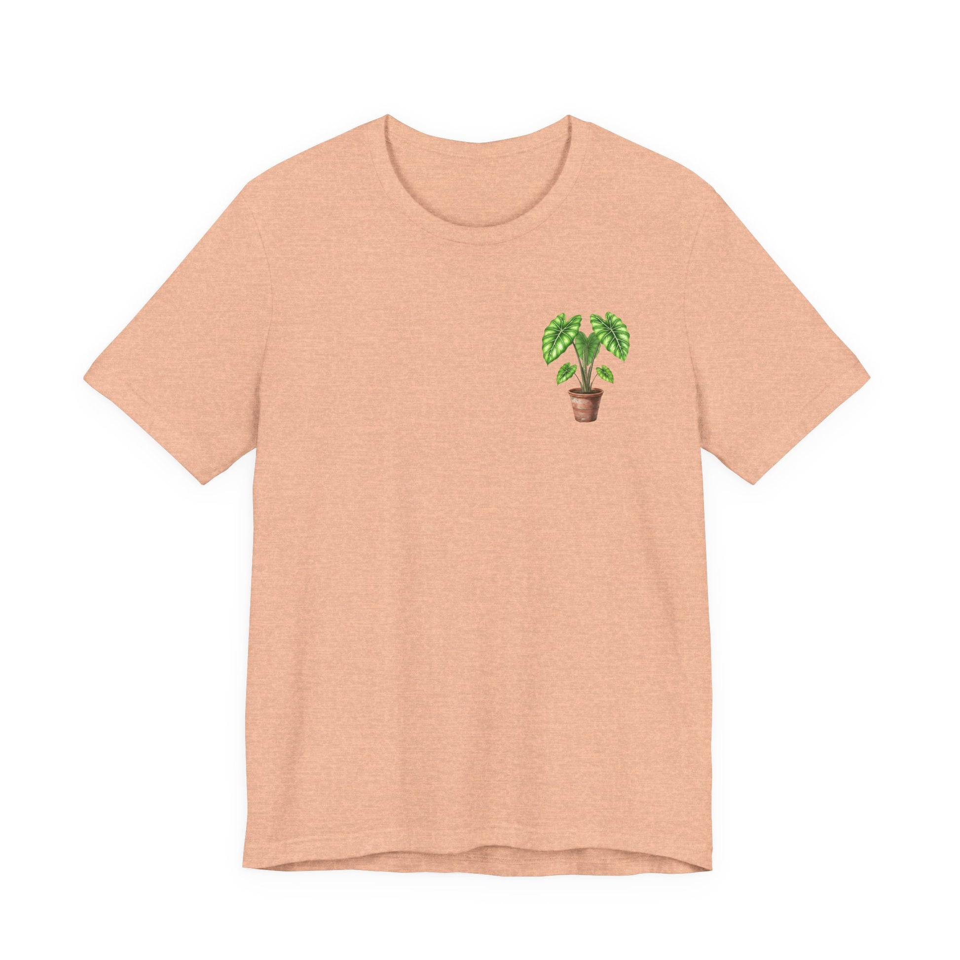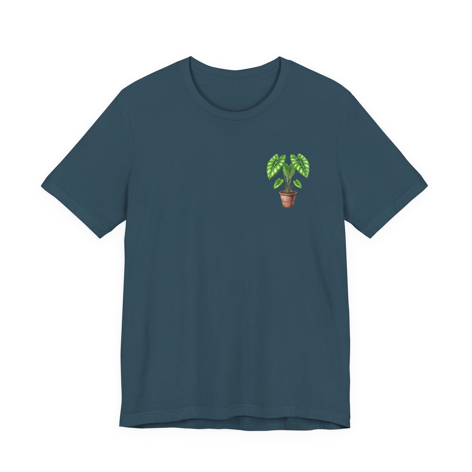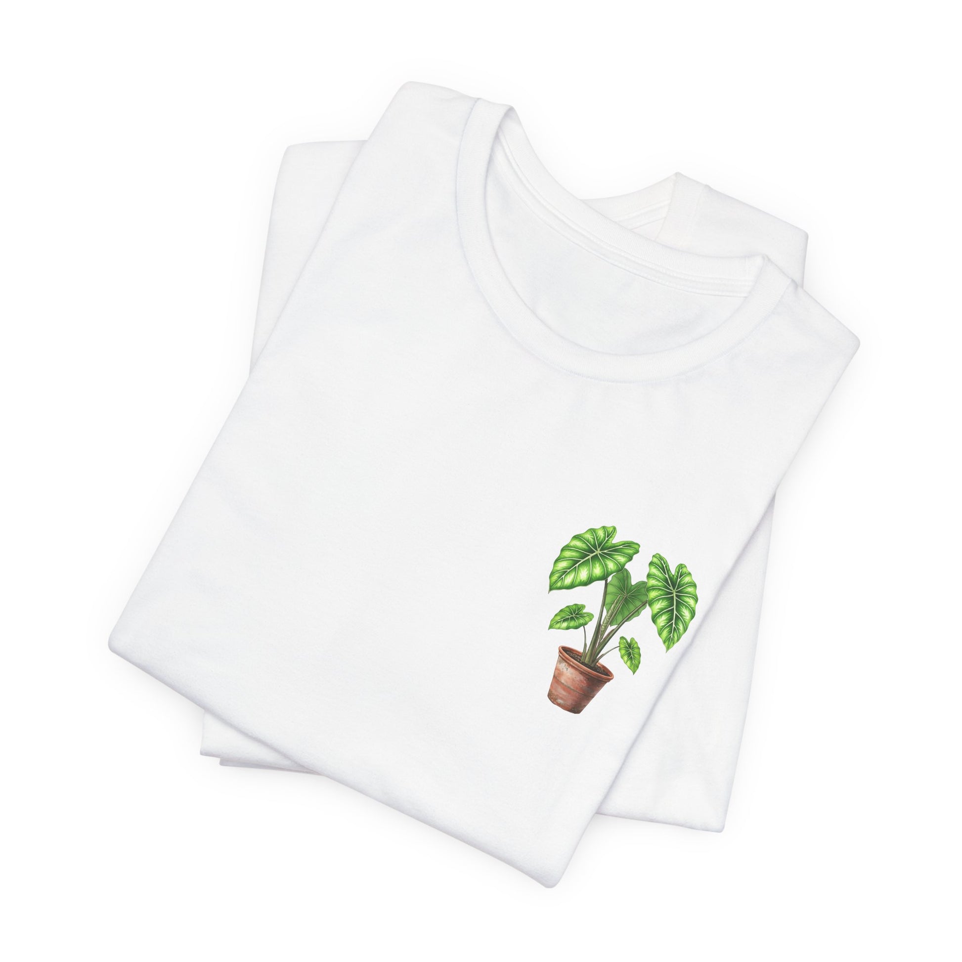 Show off your love for exotic foliage with our "Pocket Alocasia" t-shirt! This stylish design features a charming, hand-drawn illustration of a vibrant Alocasia plant with its distinctive, often patterned or deeply veined leaves, nestled in a classic terracotta pot. Subtly placed over the left chest area, this striking plant brings an elegant, tropical touch to your everyday look. It’s the perfect tee for devoted plant parents, lovers of unique houseplants, or anyone who appreciates sophisticated, nature-inspired fashion.